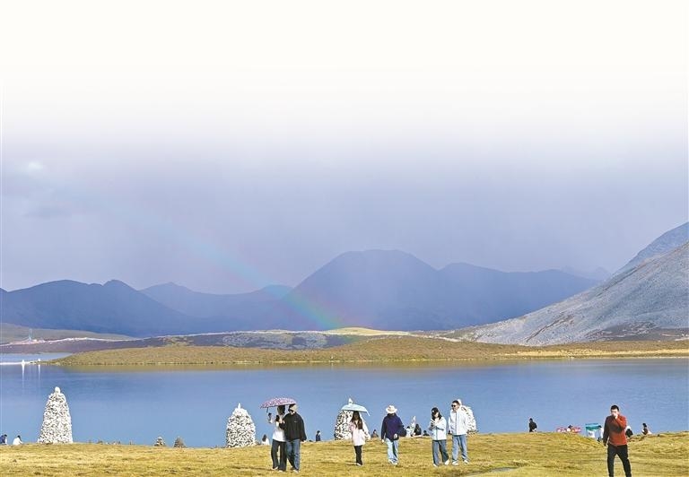 འདི་ནི་གྲོང་མི་དང་ཡུལ་སྐོར་བས་གཟི་བྱིན་བླ་མཚོར་ཡུལ་སྐོར་བྱེད་བཞིན་པ།