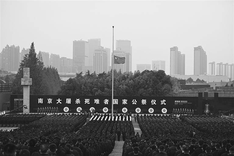 སྤྱི་མཆོད་བྱེད་སྒོ་ཀྲུང་གོར་བཙན་འཛུལ་བྱེད་མཁན་རི་པིན་དམག་གི་ནན་ཅིང་དམར་གསོད་ཆེན་པོར་རྐྱེན་ལམ་དུ་ཤོར་མཁན་སྤུན་ཟླའི་དྲན་གསོ་ཁང་གི་འདུ་འཛོམས་ཐང་ཆེན་དུ་སྤེལ་ཞིང་། བྱེད་སྒོ་སྤེལ་ཡུལ་དུ་རྣམ་པ་སྒམ་བརླིང་ལྡན་པ་དང་རྒྱལ་དར་ཕྱེད་ཀ་ཕབ་ཡོད་པ་རེད། ལས་རིགས་ཁག་གི་འཐུས་མི་8000ཙམ་གྱིས་བྲང་ཁར་མེ་ཏོག་དཀར་པོ་བཏགས་ནས་གུས་སྟབས་ཀྱིས་ཁུ་སིམ་པོར་ལངས་ནས་བསྡད། ཆུ་ཚོད་བཅུ་པ་ཏག་ཏག་ལ་སྤྱི་མཆོད་བྱེད་སྒོ་འགོ་ཚུགས་ཏེ་ཀྲུང་ཧྭ་མི་དམངས་སྤྱི་མཐུན་རྒྱལ་ཁབ་ཀྱི་རྒྱལ་གླུ་བླངས། རྒྱལ་གླུ་བཏང་རྗེས་ཚོགས་ར་ཡོངས་ཀྱིས་ནན་ཅིང་དམར་གསོད་ཆེན་པོར་རྐྱེན་ལམ་དུ་ཤོར་མཁན་ལ་ངག་བསྡམས་ནས་མྱ་ངན་ཞུས་པ་དང་། ནན་ཅིང་གྲོང་ཁྱེར་གྱིས་མཁའ་ཟོན་ཉེན་བརྡ་བཏང་བ། རླངས་འཁོར་གཏོང་མཚམས་བཞག་ནས་དུང་བརྡ་གྲགས་པ། ལམ་མིས་རང་སར་ངག་བསྡམས་ནས་མྱ་ངན་ཞུས་པ་རེད། ངག་བསྡམས་ནས་མྱ་ངན་ཞུས་རྗེས་བཅིངས་འགྲོལ་དམག་དམག་མིའི་རོལ་ཆ་ཚོགས་པས་དཀྲོལ་བའི《རྒྱལ་ཁབ་ཀྱི་སྤྱི་མཆོད་རོལ་དབྱངས》ཀྱི་འགྱུར་ཁུག་ཁྲོད་བཅིངས་འགྲོལ་དམག་གི་གཟབ་སྦྲེང་སིའི་གུས་དམག་རུ་ཆེན་གྱི་གུས་དམག་16གིས་འདས་མཆོད་མེ་ཏོག་ཕྲེང་བ་བརྒྱད་ཡར་ལ་བཀྱགས་ནས་འདས་མཆོད་སྟེགས་བུར་ཕུལ་བ་རེད།
