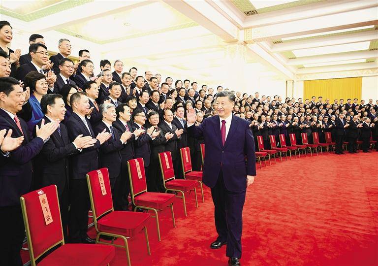 ཟླ་12ཚེས་29ཉིན། ཏང་དང་རྒྱལ་ཁབ་ཀྱི་འགོ་ཁྲིད་ཞི་ཅིན་ཕིང་དང་ཚའེ་ཆི་སོགས་ཀྱིས་མི་དམངས་ཚོགས་ཁང་ཆེ་མོར་2023ལོའི་ལོ་འཁོར་གྱི་ཕྱི་རྒྱལ་དུ་བཅའ་སྡོད་གཞུང་ཚབ་པའི་ལས་དོན་ཚོགས་འདུར་ཞུགས་མཁན་གཞུང་ཚབ་པ་ཡོངས་ལ་མཇལ་འཕྲད་གནང་བ།