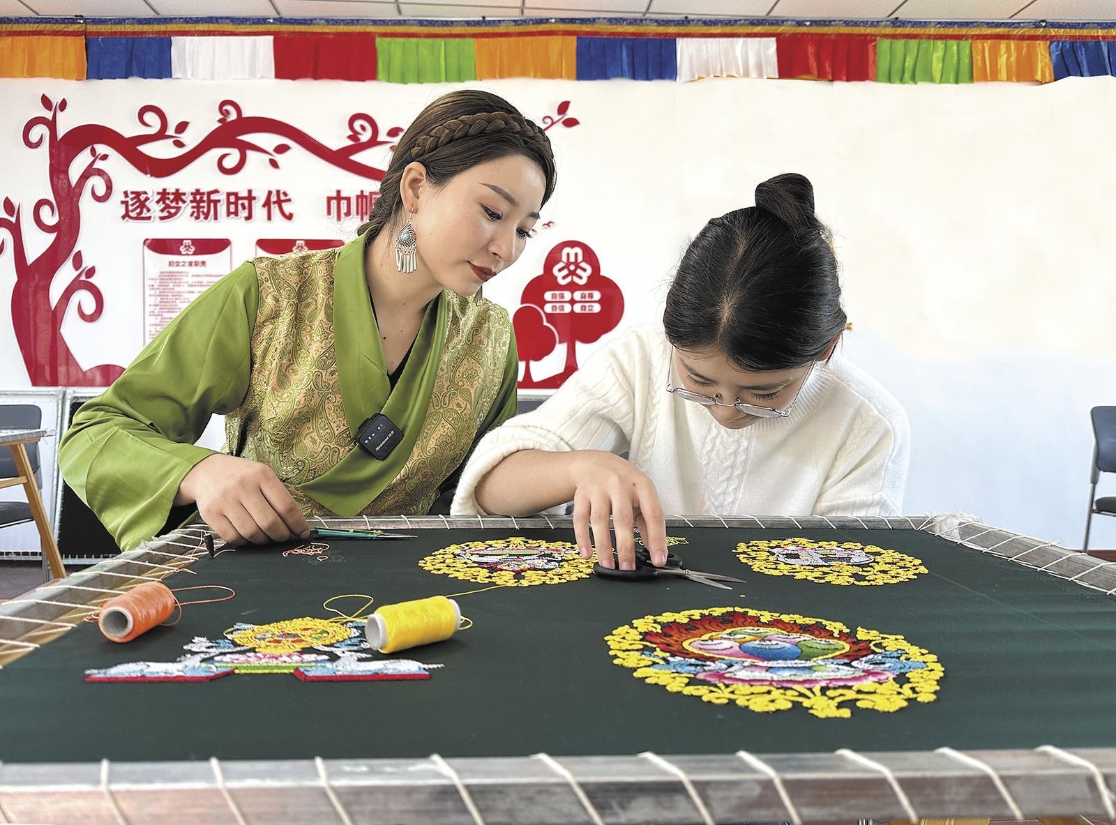 རེབ་གོང་སྒྱུ་རྩལ་རྒྱུན་འཛིན་དང་ཁྱབ་གདལ་གཏོང་བའི་ལམ་དུ། བདེ་སྐྱིད་འཚོའི་གོམ་ཁ་ལ་ལྷོད་པ་མེད། མོས་མགོ་འབུལ་ལུས་འབུལ་གྱིས་སྒྱུ་རྩལ་གསར་རྩོམ་ལ་ཞུགས་པ་དང་། བརྩམས་ཆོས་རེ་རེ་བློ་རྣལ་མོས་གསར་རྩོམ་བྱས་ཤིང་། ད་དུང“རིག་གནས་དངོས་མང་སྟོན་ཚོགས”སོགས་འོས་སྦྱོར་བྱེད་སྒོ་ཆེན་མོ་སོ་སོའི་ཐོག་མཚར་སྡུག་མངོན། རིག་གནས་ཀྱི་སྟོབས་ཀྱིས་མི་སེམས་སྡུད་པ་དང་འཚོ་བར་འགྱུར་ལྡོག་གཏོང་ཐུབ་པ་མོས་གསལ་པོར་ཤེས་ཡོད་པས། རིག་གནས་སྐུལ་ཁྲིད་ཀྱི་དཔེ་རྣམ་བརྒྱུད་ཅིང་། གཙགས་དྲུབ་ཞིབ་འཇུག་འཛིན་གྲྭ་དང་རིག་གནས་མཉམ་སྤྱོད་ཚོགས་འདུ་རྩ་འཛུགས་བྱས་ནས། བུད་མེད་མང་པོ་ཞུགས་པར་བཀུག་པ་དང་། ཁོ་ཚོ་ཁྲིད་ནས་རང་སྟེང་གི་བག་ནུས་བསྔོགས་ཏེ། རིག་གནས་རྒྱུན་འཛིན་དང་མཉམ་དུ་རང་ངོས་རིན་ཐང་ཡང་མངོན་འགྱུར་བྱས།