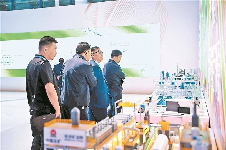 འགྲེམས་སྟོན་ལ་ཞུགས་པའི་ཚོང་པས་ནུས་ཁུངས་གཙང་མའི་འཛུགས་སྐྲུན་གྱི་གྲུབ་འབྲས་ལ་རྒྱུས་ལོན་བྱེད་བཞིན་པ།
