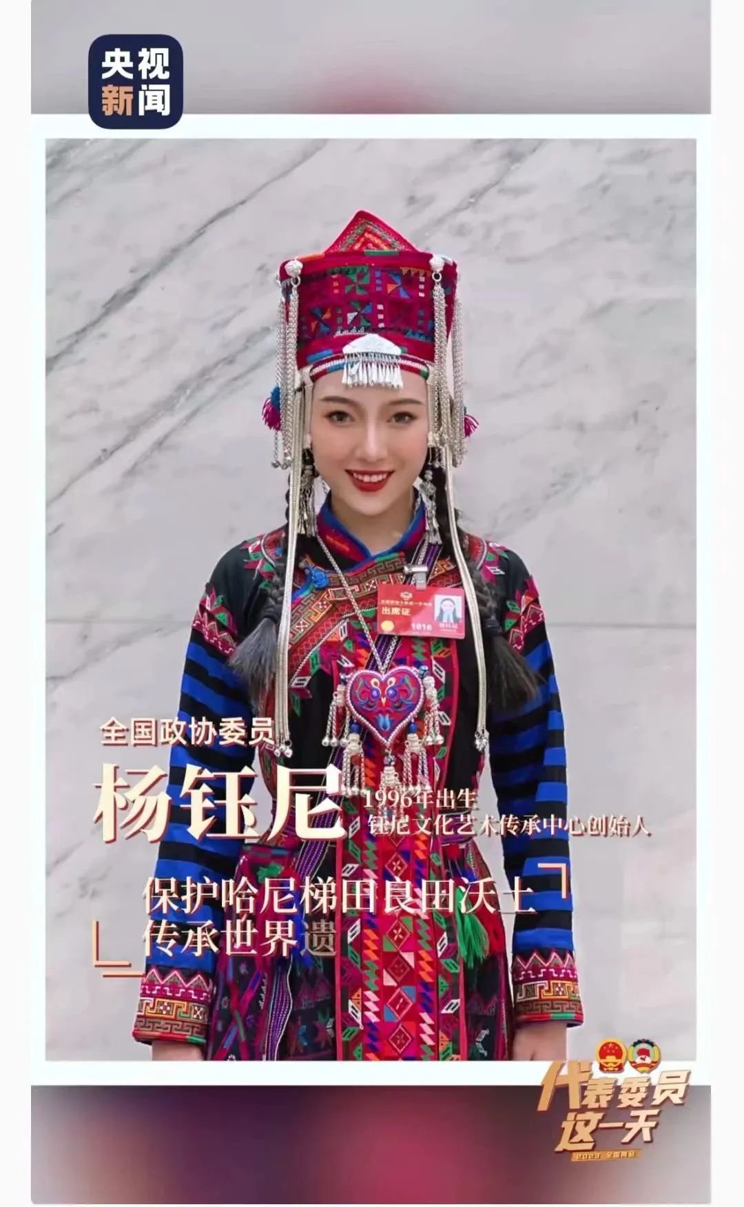 ཡུན་ནན་ཧུང་ཧོ་ཡི་ཧ་ཉི་སྐས་ཞིང་མཐོ་ཤོས་ལ་རིམ་པ་3700ལྷག་ཙམ་ཟིན་གྱི་ཡོད་པས་འཛམ་གླིང་ཤུལ་བཞག་གི་མིང་གཞུང་ནང་བཅུག་ཡོད། རྒྱལ་ཡོངས་སྲིད་གྲོས་ཀྱི་ཨུ་ཡོན་དབྱང་ཡུས་ཉི་ནི་1995ལོའི་རྗེས་སུ་སྐྱེས་པ་ཞིག་ཡིན་ཞིང་། ཁོང་སྐས་ཞིང་འགྲམ་དུ་སྐྱེས་པ་དང་སྐས་ཞིང་འགྲམ་དུ་འཚར་ལོང་བྱུང་བ་དང་། ད་ཆ་ཧ་ཉི་སྐས་ཞིང་གི་ཞིང་ས་གཤིན་པོ་སྲུང་སྐྱོང་ལས་ལ་གཞོལ་བཞིན་ཡོད། ཁོང་གིས་བེད་སྤྱོད་ཡོད་པའི་འཛམ་གླིང་ཤུལ་བཞག་སྲུང་སྐྱོང་དང་རྒྱུན་འཛིན་བྱ་ཤུགས་ཆེ་རུ་གཏོང་བའི་གྲོས་གཞི་ཞིག་རྒྱལ་ཡོངས་ཀྱི་ཚོགས་ཆེན་གཉིས་ལ་བཏོན་ཡོད། ཁོང་གིས། ང་ཚོའི་ཕུལ་བྱུང་གི་མི་རིགས་རིག་གནས་རྒྱུན་འཛིན་དང་དར་སྤེལ་བཏང་སྟེ། མི་རིགས་མཐུན་སྒྲིལ་ཡར་ཐོན་ཆེད་ལེགས་སྐྱེས་འབུལ་རྒྱུ་ནི་ངའི་བློ་བརྟན་འགྱུར་མེད་ཀྱི་གདམ་ག་ཞིག་ཡིན་ཞེས་གསུངས་པ་རེད།